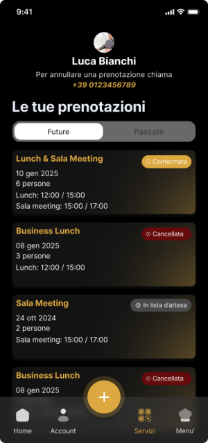 Gestione completa dell’abbonamento e dei servizi del club, inviti per gli ospiti e canale di comunicazione interno tra soci e staff — tutto in un’unica app mobile che semplifica l’esperienza del club