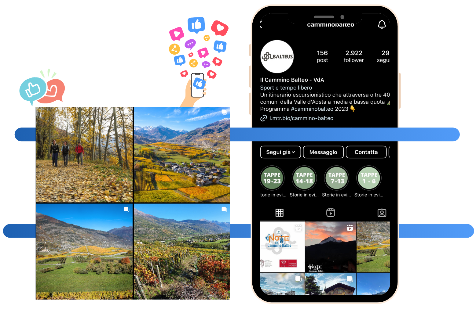 Ci occupiamo di gestire la tua pagina Instagram, creando contenuti coinvolgenti che mettono in luce le bellezze del territorio comunale.