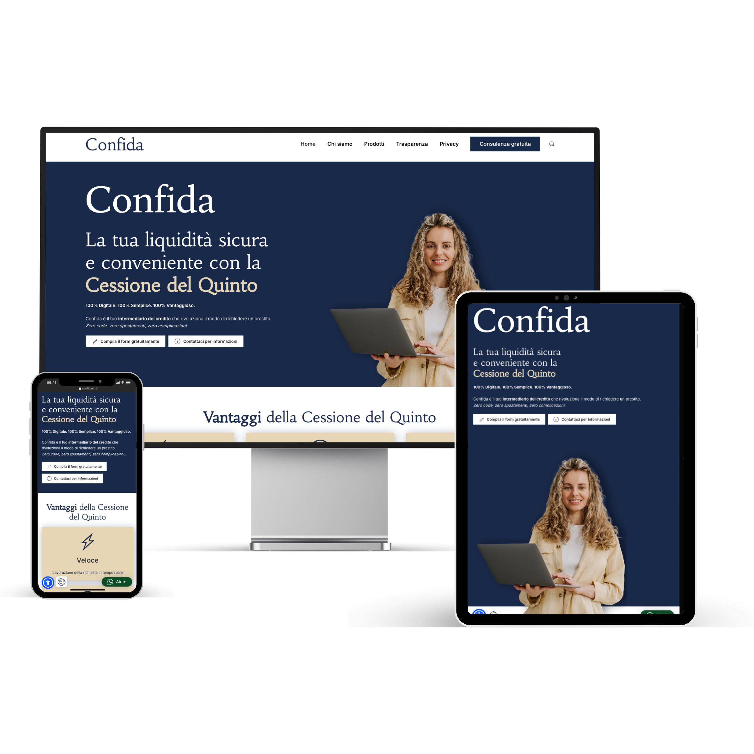 Ecco il nuovo sito di Confida: una piattaforma pensata per portare innovazione e semplicità al servizio di chi cerca soluzioni finanziarie rapide e affidabili. Un sito performante e orientato ai risultati, che rispecchia pienamente la filosofia Confida: rendere l’accesso al credito più semplice e sicuro, grazie a strumenti tecnologici avanzati e processi completamente digitalizzati, nel segno di efficienza e trasparenza.