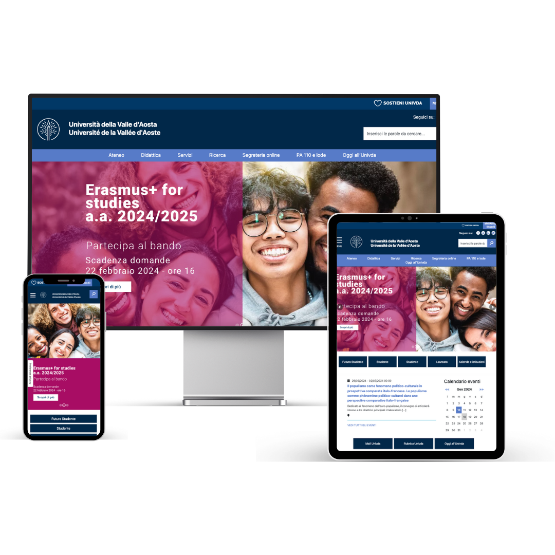 Una nuova linea grafica per l’UniVda nel rispetto degli standard dettati dall’Agenzia per l’Italia digitale. Un sito completamente accessibile, in grado di rendere ottimale l’user experience e facilitare la navigazione e la ricerca dei contenuti per tutti gli utenti. Plugin personalizzati e creati su misura, migrazione completa di tutti i contenuti dal vecchio al nuovo sito, sito multilingua e ottimizzazione SEO.