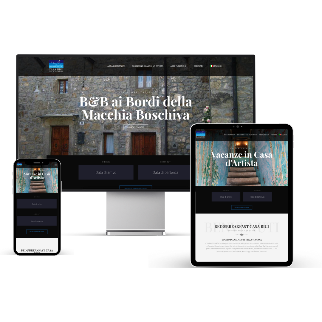 La casa dell’artista Gregorio Piccoli si trasforma in un bellissimo Bed&Breakfast nel cuore della Maremma. Team Sviluppo ha disegnato un sito in grado di valorizzare le bellezze del luogo, i capolavori dell’artista e le particolari camere del B&B. Gli utenti possono esplorare tutto il B&B e riservarsi una camera direttamente dal sito.